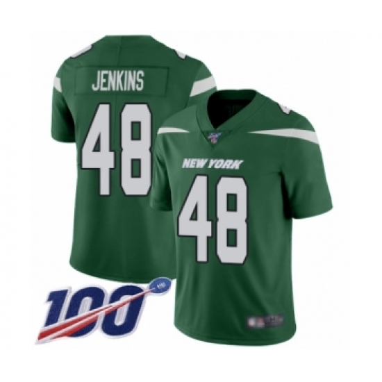 >Men's New York Jets #48 Jordan Jenkins Green Team Color Vapor Untouchable Limited Player 100th Season Football Jersey