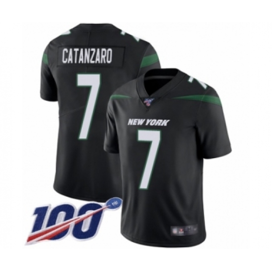 Men's New York Jets #7 Chandler Catanzaro Black Alternate Vapor Untouchable Limited Player 100th Season Football Jersey