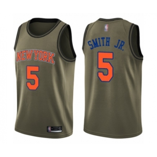 Men's New York Knicks #5 Dennis Smith Jr. Swingman Green Salute to Service Basketball Jersey