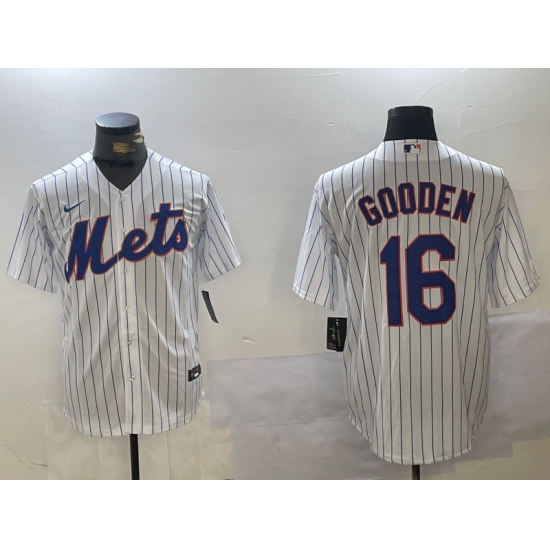 >Men's New York Mets #16 Dwight Gooden White Cool Base Stitched Jersey