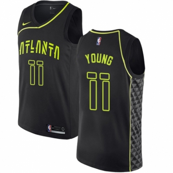 >Men's Nike Atlanta Hawks #11 Trae Young Swingman Black NBA Jersey - City Edition