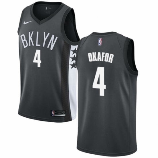 >Men's Nike Brooklyn Nets #4 Jahlil Okafor Swingman Gray NBA Jersey Statement Edition