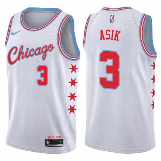 Men's Nike Chicago Bulls #3 Omer Asik Swingman White NBA Jersey - City Edition