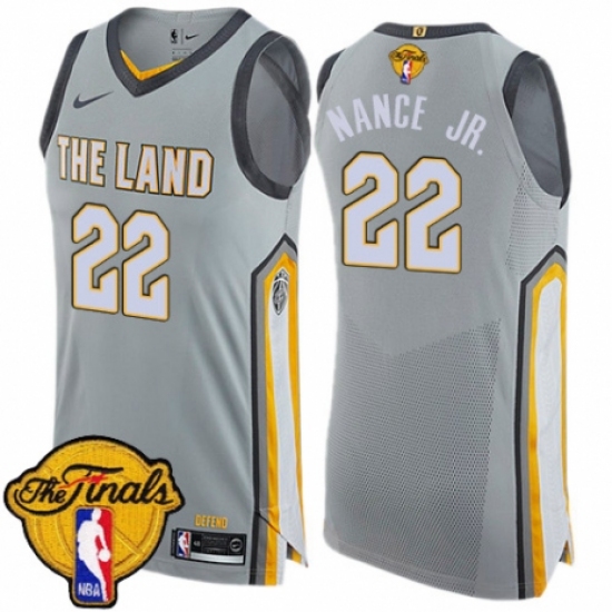 >Men's Nike Cleveland Cavaliers #22 Larry Nance Jr. Authentic Gray 2018 NBA Finals Bound NBA Jersey - City Edition