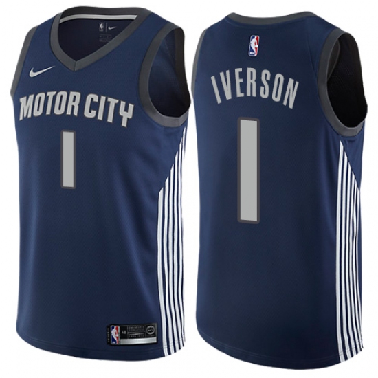 Men's Nike Detroit Pistons #1 Allen Iverson Swingman Navy Blue NBA Jersey - City Edition
