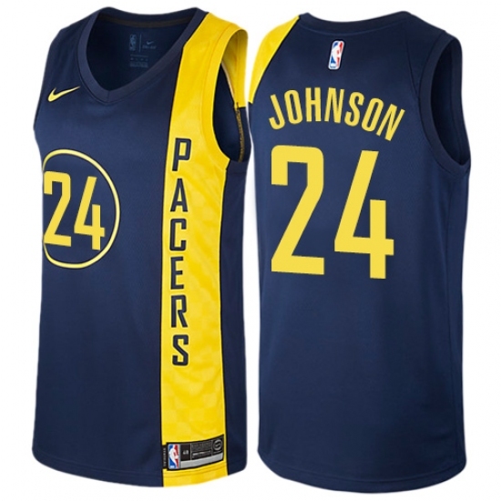 >Men's Nike Indiana Pacers #24 Alize Johnson Authentic Navy Blue NBA Jersey - City Edition