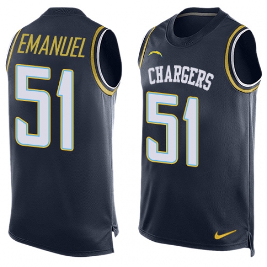 Home>NFL>Los Angeles Chargers>Kyle Emanuel>Men's Nike Los Angeles Chargers #51 Kyle Emanuel Limited Navy Blue Player Name & Number Tank Top NFL Jersey