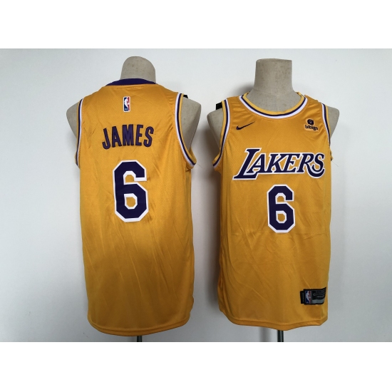 >Men's Nike Los Angeles Lakers #6 LeBron James Yellow Swingman Association Edition Jersey