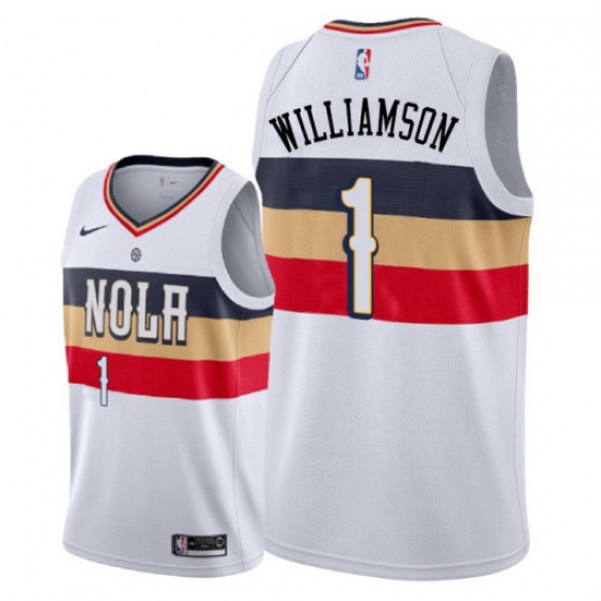 >Men's Nike New Orleans Pelicans #1 Zion Williamson White NBA Swingman Earned Edition Jersey