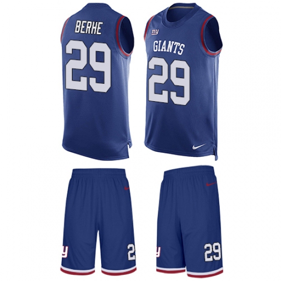 Home>NFL>New York Giants>Nat Berhe>Men's Nike New York Giants #29 Nat Berhe Limited Royal Blue Tank Top Suit NFL Jersey