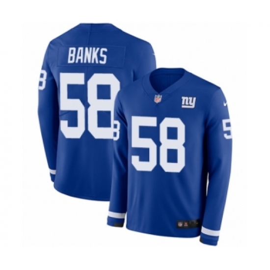 >Men's Nike New York Giants #58 Carl Banks Limited Royal Blue Therma Long Sleeve NFL Jersey