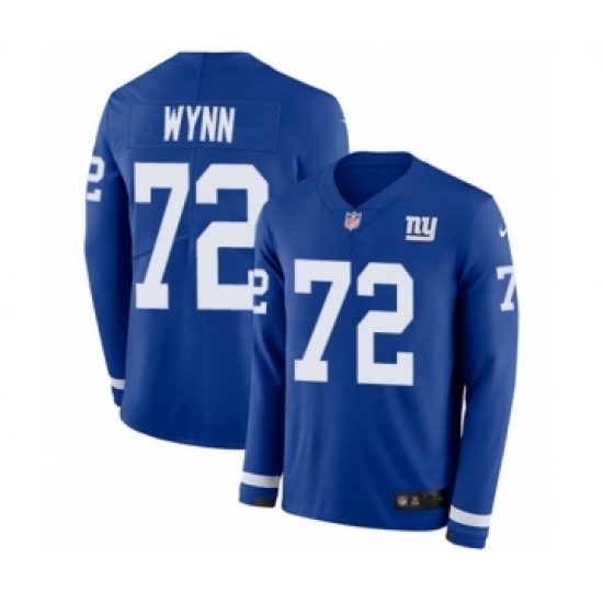 Men's Nike New York Giants #72 Kerry Wynn Limited Royal Blue Therma Long Sleeve NFL Jersey