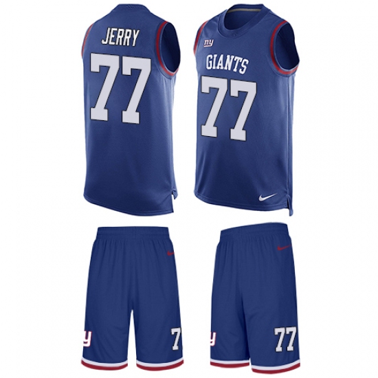 Men's Nike New York Giants #77 John Jerry Limited Royal Blue Tank Top Suit NFL Jersey