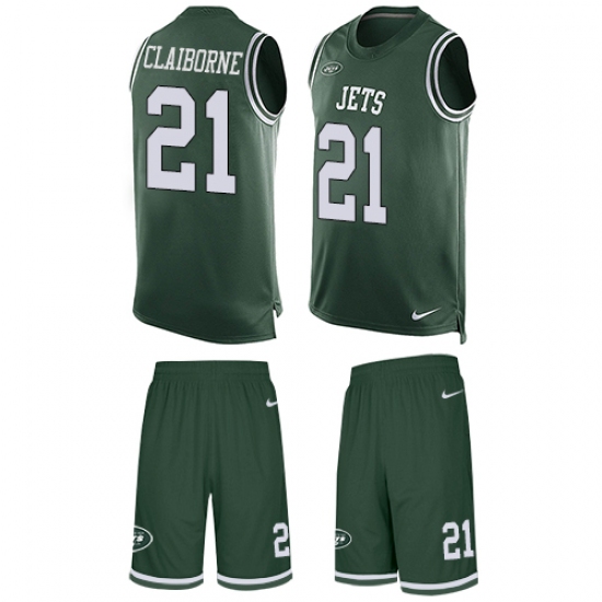 Men's Nike New York Jets #21 Morris Claiborne Limited Green Tank Top Suit NFL Jersey