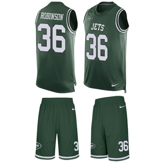 Home>NFL>New York Jets>Rashard Robinson>Men's Nike New York Jets #36 Rashard Robinson Limited Green Tank Top Suit NFL Jersey