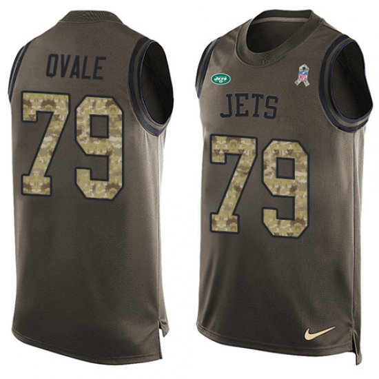 Home>NFL>New York Jets>Brent Qvale>Men's Nike New York Jets #79 Brent Qvale Limited Green Salute to Service Tank Top NFL Jersey