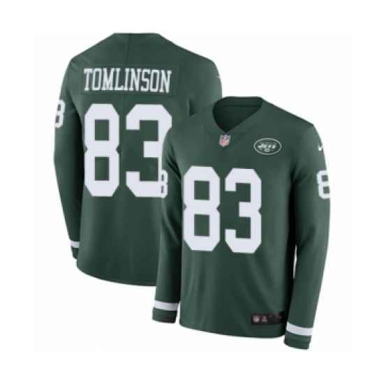 >Men's Nike New York Jets #83 Eric Tomlinson Limited Green Therma Long Sleeve NFL Jersey