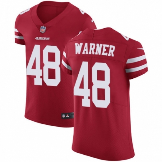 >Men's Nike San Francisco 49ers #48 Fred Warner Red Team Color Vapor Untouchable Elite Player NFL Jersey
