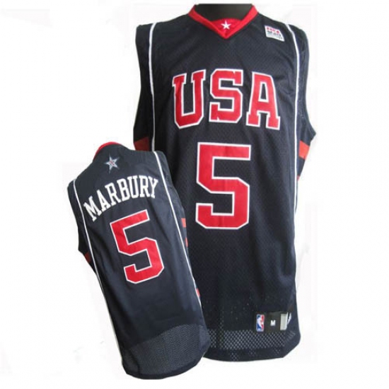 Men's Nike Team USA #5 Stephon Marbury Authentic Navy Blue Summer Olympics Basketball Jersey