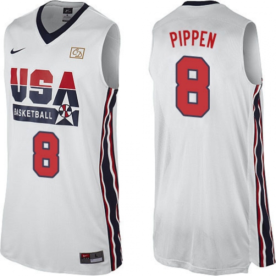 Men's Nike Team USA #8 Scottie Pippen Authentic White 2012 Olympic Retro Basketball Jersey
