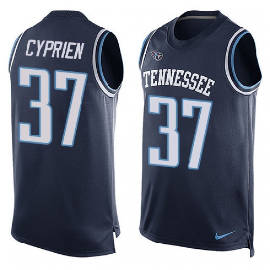 Men's Nike Tennessee Titans #37 Johnathan Cyprien Limited Navy Blue Player Name & Number Tank Top Tank Top NFL Jersey