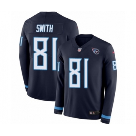 Men's Nike Tennessee Titans #81 Jonnu Smith Limited Navy Blue Therma Long Sleeve NFL Jersey