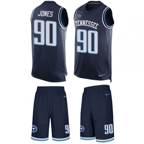 Men's Nike Tennessee Titans #90 DaQuan Jones Limited Navy Blue Tank Top Suit NFL Jersey