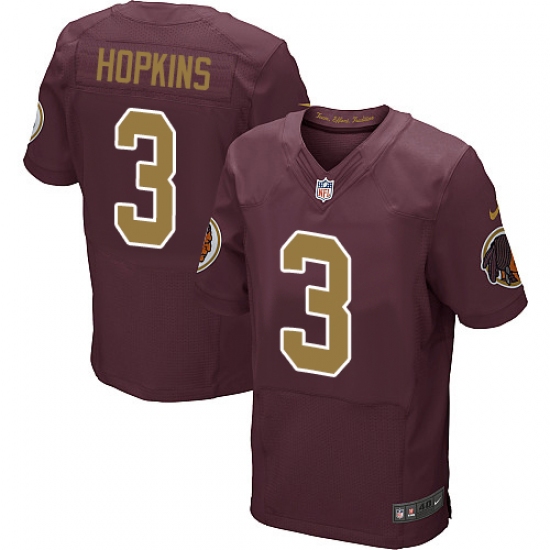 Home>NFL>Washington Redskins>Dustin Hopkins>Men's Nike Washington Redskins #3 Dustin Hopkins Elite Burgundy Red/Gold Number Alternate 80TH Anniversary NFL Jersey