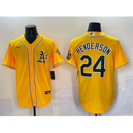 Men's Oakland Athletics #24 Rickey Henderson Yellow With Stitched Baseball Jersey