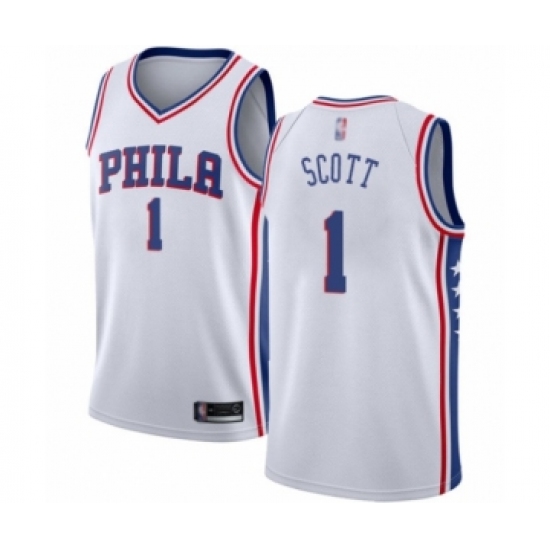 Men's Philadelphia 76ers #1 Mike Scott Authentic White Basketball Jersey - Association Edition
