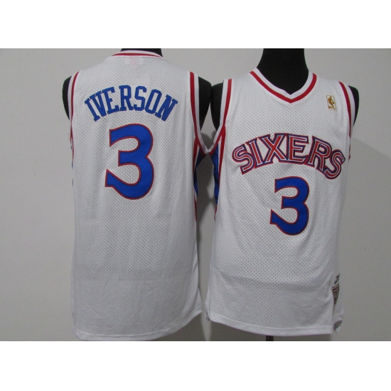Men's Mitchell and Ness Philadelphia 76ers #3 Allen Iverson Swingman Blue Throwback NBA Jersey