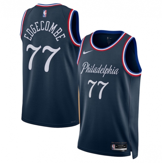 Men's Philadelphia 76ers #77 V. J. Edgecombe Navy 2025-26 City Edition Swingman Stitched Jersey