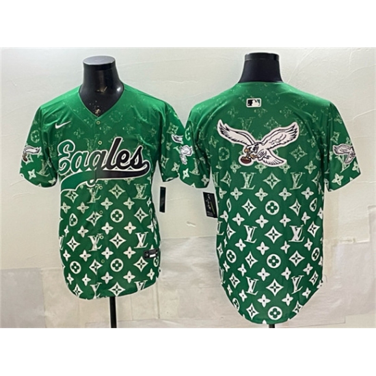 >Men's Philadelphia Eagles Team Big Logo Green With Limited Stitched Baseball Jerseys
