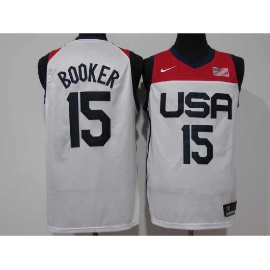 >Men's Phoenix Suns #15 Devin Booker White USA Basketball Tokyo Olympics 2021 Jersey