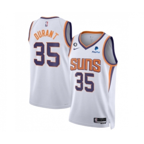 >Men's Phoenix Suns #35 Kevin Durant White Association Edition With No.6 Patch Stitched Basketball Jersey