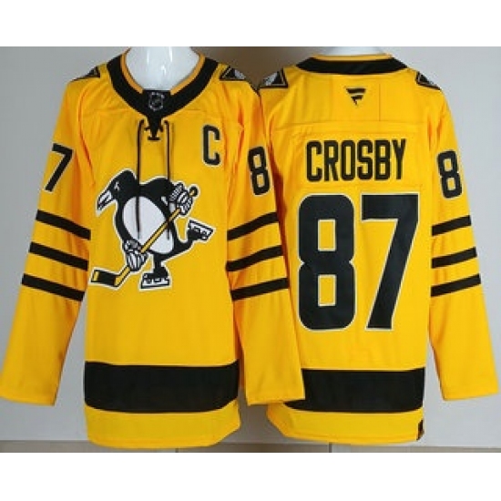 Men's Pittsburgh Penguins #87 Sidney Crosby Gold 2025-26 With C Alternate Stitched Hockey Jersey
