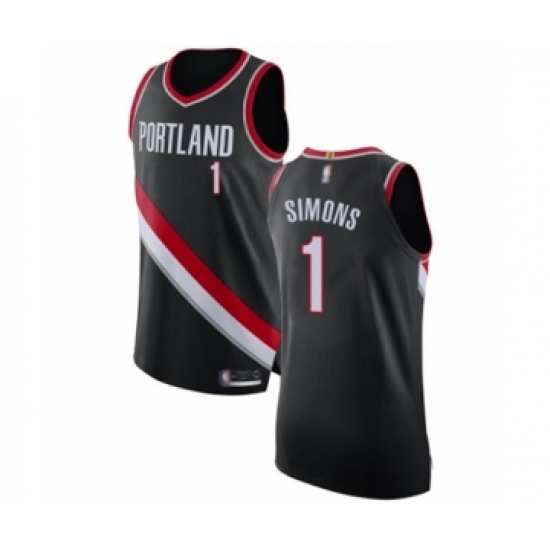 >Men's Portland Trail Blazers #1 Anfernee Simons Authentic Black Basketball Jersey - Icon Edition
