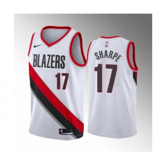 >Men's Portland Trail Blazers #17 Shaedon Sharpe White Association Edition Stitched Basketball Jersey