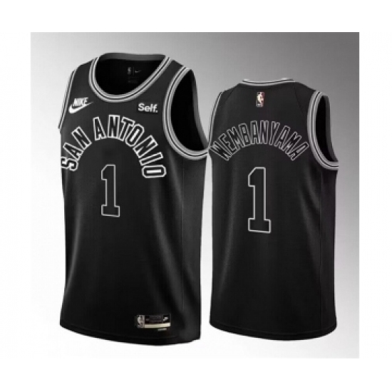 Men's San Antonio Spurs #1 Victor Wembanyama Black 2022-23 Classic Edition Stitched Basketball Jersey