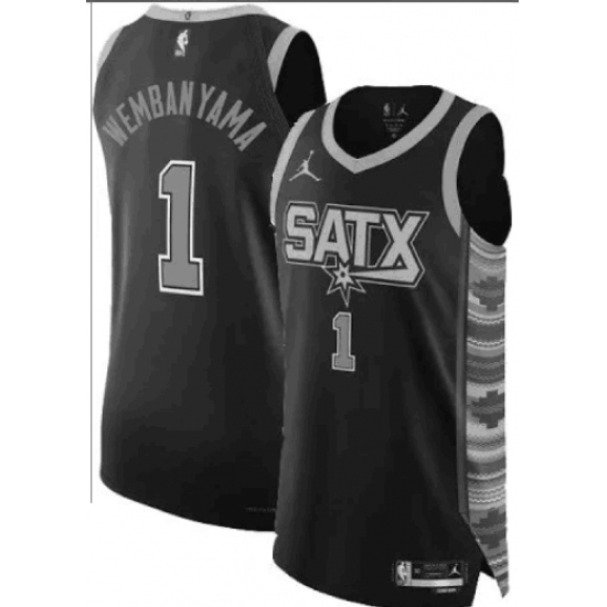 Men's San Antonio Spurs #1 Victor Wembanyama Black Statement Edition Stitched Jersey