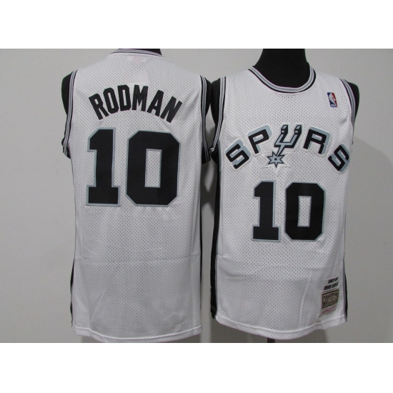 >Men's San Antonio Spurs #10 Dennis Rodman White Swingman Throwback Jersey