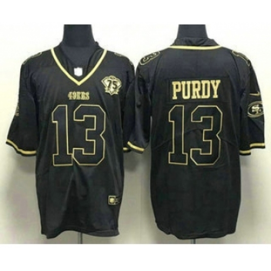 Men's San Francisco 49ers #13 Brock Purdy Black Gold With 75th Anniversary Stitched Jersey