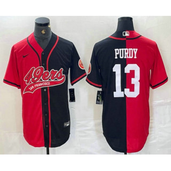 >Men's San Francisco 49ers #13 Brock Purdy Red Black Two Tone Cool Base Stitched Baseball Jersey
