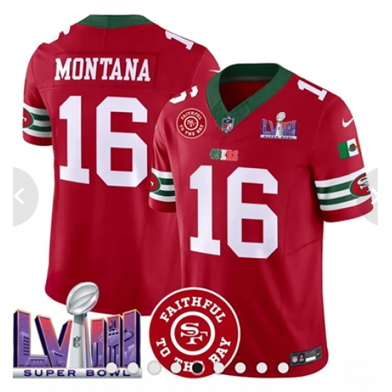 Youth San Francisco 49ers #16 Joe Montana Red Vapor Untouchable Limited Stitched 2024 Super Bowl LVIII Jersey