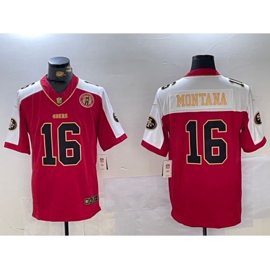 Men's San Francisco 49ers #16 Joe Montana Red Gold FUSE Gate Bridge Vapor Limited Stitched Jersey
