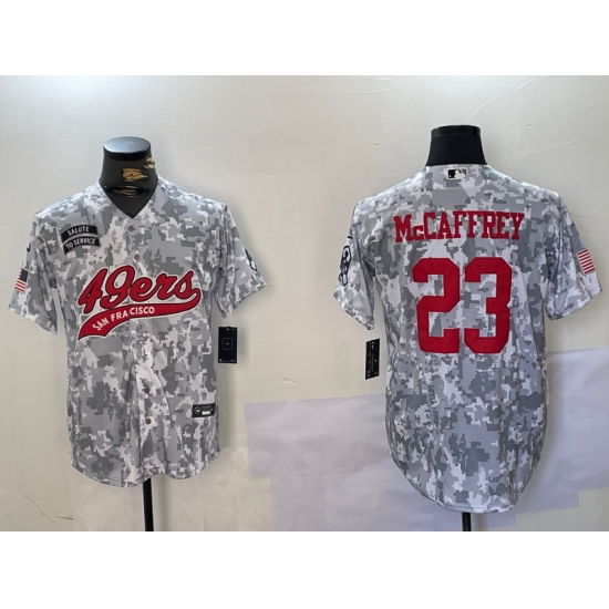 >Men's San Francisco 49ers #23 Christian McCaffrey Arctic Camo 2024 Salute to Service Stitched Baseball Jersey