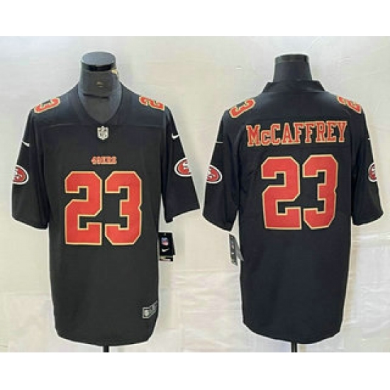 Men's San Francisco 49ers #23 Christian McCaffrey Balck Golden FUSE Vapor Limited Stitched Jersey