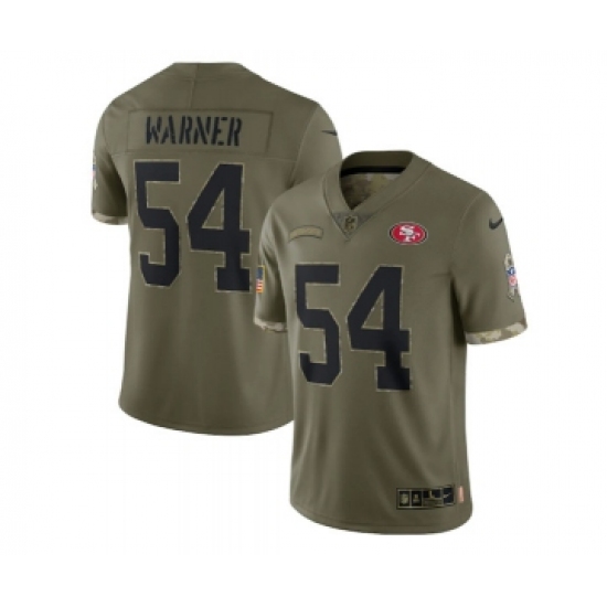 >Men's San Francisco 49ers #54 Fred Warner 2022 Olive Salute To Service Limited Stitched Jersey