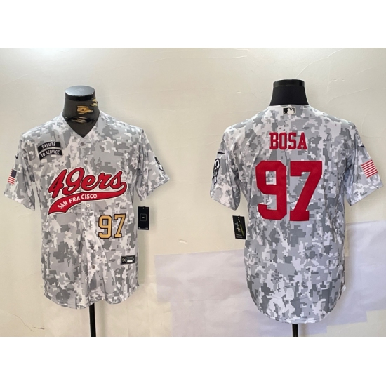 >Men's San Francisco 49ers #97 Nick Bosa Arctic Camo 2024 Salute to Service Stitched Baseball Jerseys
