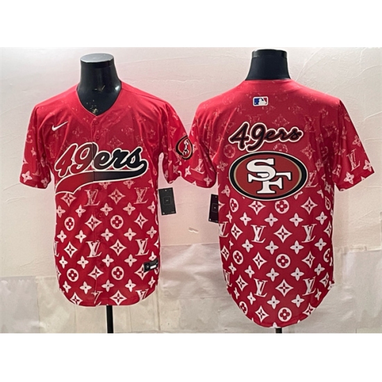 Men's San Francisco 49ers Team Big Logo Red Limited Stitched Baseball Jersey
